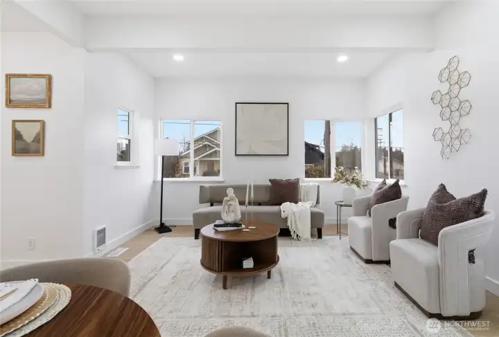 Ideally located near Lake Washington and just 5 minutes from downtown Seattle, this stunning 2-bedroom, 2-bath home with a bonus room offers the perfect combination of comfort, style, and convenience. Thoughtfully designed with a unique touch of luxury, the home features an open-concept kitchen that flows seamlessly into the main living area, creating a bright and inviting space perfect for both everyday living and entertaining. Large windows bring in an abundance of natural light throughout the home, enhancing its warm and airy feel. The lower level offers excellent flexibility for additional entertainment space, guest quarters, a home office, or even potential rental income. Outside, the backyard is a true retreat, offering privacy and the perfect setting to relax, unwind, or host gatherings. This home is a rare opportunity to enjoy a versatile layout, beautiful finishes, and an unbeatable location.