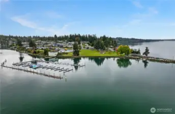 AFFORDABLE HOME WITH WATER VIEWS OF PUGET SOUND AND THE OLYMPIC MOUNTAINS! Come relax in this cozy, clean 3 BR, 1 BA single-wide manufactured home with a HUGE 3-BAY SHOP in Carlyon Beach. Enjoy stunning sunsets from the dining and living rooms. Home has new bathroom sinks, a new toilet, and professionally installed new carpet in the primary bedroom; tie-downs are 2 years old, roof is 2-3 years old, and gutters are 1 year old... home is move-in ready. Store your boat, cars, and more in the 32x36 SHOP (or rent out boat space for additional income). Shop has 3 bays, a woodstove, electricity, and W/D hookups. This won't last long, so don't miss out on a comfortable mortgage with a short walk to the beach & playground ... bring your kayak!