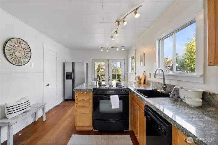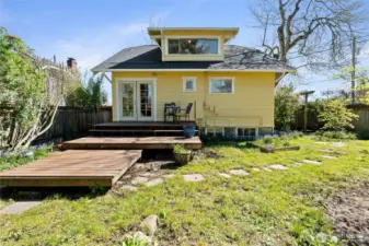Charming Craftsman in the desirable 6th Ave District! Situated on a large corner lot, this 3-bedroom, 1-bath home blends classic character with thoughtful updates. Fresh interior paint and recently painted exterior (2025) give the home a crisp, move-in-ready feel, while major system upgrades—including a newer roof, sewer line, AC/heat pump, and furnace—offer peace of mind. Inside, you’ll find three spacious bedrooms, a beautifully remodeled bathroom, and a bright kitchen featuring barstool seating off the peninsula—perfect for everyday living and entertaining. Natural light pours through large windows, highlighting the original fir and hardwood floors throughout. French doors off the kitchen open to an expansive deck and fully fenced backyard, creating a private outdoor oasis complete with garden space. The unfinished basement provides excellent potential for added square footage or storage. A standout feature is the detached garage/building (437 sqft), upgraded with a new roof, siding, foundation, electrical, and sub-panel, plus partially framed interior—ideal for a future DADU, studio, or investment opportunity. Conveniently located near 6th Ave’s vibrant restaurants, shopping, parks, great schools, and easy freeway access, this home offers the perfect blend of charm, location, and future potential.