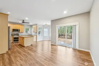 Inviting rambler on a spacious .63-acre lot with an open, functional layout and thoughtful updates throughout. Living and dining rooms feature vaulted ceilings, abundant natural light, and tasteful designer colors, while updated flooring in the main living areas (2024) adds a modern, refreshed feel. Brand-new carpet in all bedrooms and the office (2026) brings comfort where it counts. The primary suite has been thoughtfully updated with a refreshed five-piece bath, including new flooring, vanity, fixtures, and an updated shower. The kitchen boasts a new dishwasher, and all appliances stay—making move-in a breeze. Designed with accessibility in mind, the home offers wider hallways and doorways (ADA-friendly). A sliding glass door leads to the back deck and fenced backyard, while the expansive front portion of the property remains open, offering flexibility for outdoor enjoyment. An insulated Tough Shed with loft and electricity provides space for hobbies, storage, or a home workspace. Major system updates provide peace of mind, including a new heat pump (2021), driveway and parking pad (2022), and septic improvements (2023), along with re-freshed paint on gutters and facia and new garage door seals. There’s also ample room for trailer or boat parking.