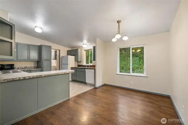 Spacious & Affordable! This inviting 3 bedroom + 2 full bath home is tucked away at the end of a cul-de-sac and backs up to a peaceful creek and greenbelt; you’ll enjoy serene views and privacy right in your own backyard. Step inside to a bright and spacious living and dining area that flows seamlessly into the kitchen, perfect for everyday living and entertaining. The kitchen features all newer appliances, ample counter space, and butcher block prep area. The thoughtfully designed layout provides excellent separation, with the large primary suite located on one side of the home with a walk-in closet and private full bath for your own personal retreat. Two additional bedrooms and a second full bath are situated on the opposite side, offering flexibility for guests, office space, or hobbies. A convenient laundry/mud room leads directly to the fully fenced backyard, ideal for pets, play, or relaxing outdoors. Located in Nisqually Pines and just a short walk to the river. Community amenities include a pool, river access, clubhouse, and parks.