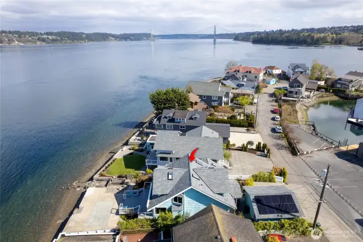 Custom remodeled, three-bedroom waterfront home on coveted Day Island! The main floor features a chef’s kitchen equipped with a Wolf range and Sub-Zero fridge, a walk-in pantry, and expansive views of the Sound and Olympics. The space flows into a dining area and a spacious living room that opens onto a multi-level composite deck. The main level also includes a Junior Suite with vaulted ceilings and a full bathroom, a cozy sitting room, and a powder room. Upstairs, the primary suite provides spectacular views, a walk-in closet, and a full bathroom. A third bedroom with marina views completes the upper floor. The outdoor living space is nicely landscaped and features an expansive patio leading to 60 feet of low-bank saltwater beach with private tideland rights. A detached two-car garage features power for EV chargers powered by rooftop solar panels.This property offers a peaceful escape with the convenience of city amenities & an award-winning school district.