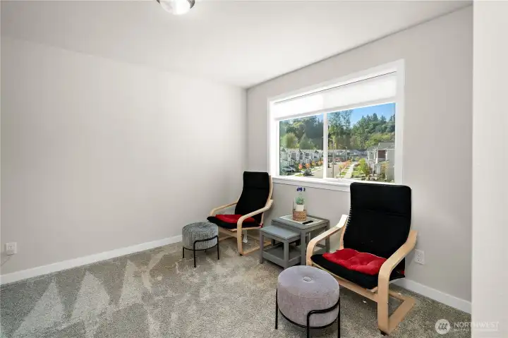 Welcome to your dream home in the 2024 built Alpine Estate community! This beautifully designed residence offers 3 beds, 2.5 baths, & an open concept floor plan ideal for modern living. The heart of the home features a light filled great room that flows into a gourmet kitchen with a large island, perfect for entertaining or everyday use. Upstairs, a versatile loft provides space for a home office or play area. The primary suite offers comfort and privacy with an en-suite bath and walk-in closet. Step outside to a tranquil backyard backed by a greenbelt, an ideal setting for relaxation or gatherings. Top-rated schools & close to restaurants, shops, and daily conveniences! Don't miss out this opportunity! **All Furniture is included**