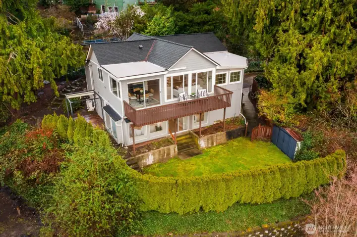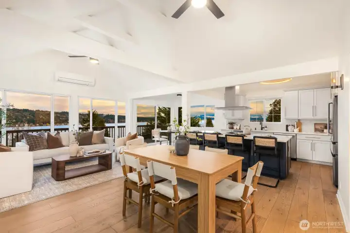 Breathtaking, unobstructed sweeping views of Lake Washington and Mt. Rainier create a truly spectacular backdrop for this exceptional Matthews Beach residence. Bathed in natural light, the home welcomes you with a grand foyer and soaring vaulted ceilings, opening to an expansive floor plan thoughtfully designed to showcase the remarkable scenery from nearly every room. The beautifully reimagined kitchen serves as the heart of the home, featuring top-of-the-line appliances, an oversized island with generous seating, and seamless flow for both refined entertaining and everyday living. Extensive high-end updates include French white oak engineered hardwood flooring throughout, fully renovated bathrooms, a newer roof, and ductless HVAC with air conditioning for year-round comfort. Ideally positioned on a quiet, private end-of-road lot, the home offers a spacious yard and expansive view deck perfect for relaxing or entertaining while taking in the iconic Pacific Northwest landscape. Just moments from the Burke-Gilman Trail and minutes to University Village and UW, this home offers a rare blend of elevated design, privacy, and unparalleled views.