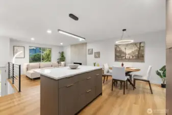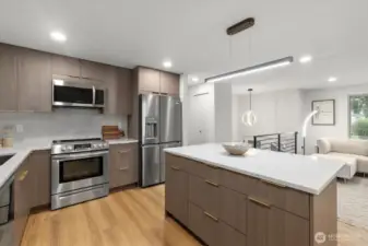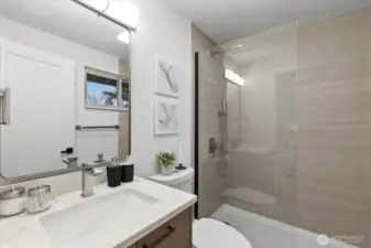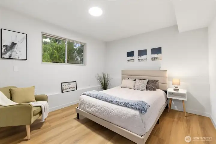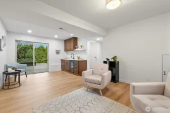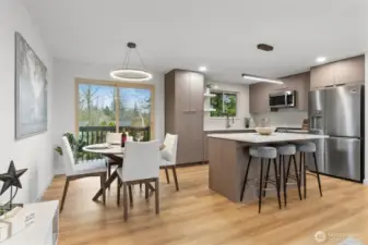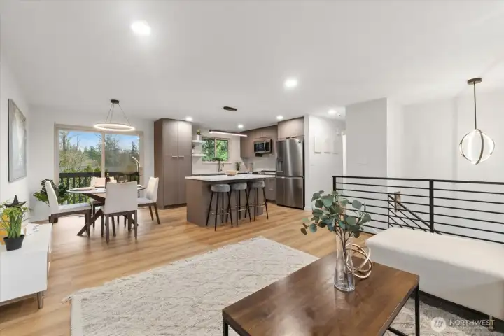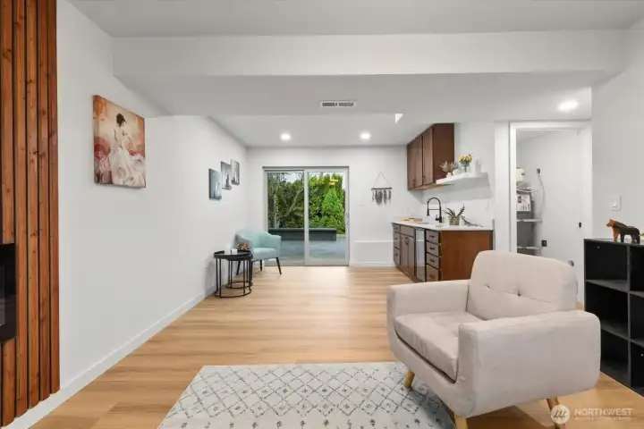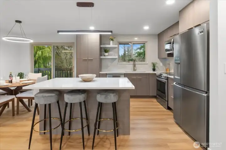 Beautifully updated home where everything has been thoughtfully renovated with tasteful, modern finishes throughout. The heart of the home is a gorgeous kitchen featuring sleek cabinetry, stylish countertops, and a layout perfect for both everyday living and entertaining. The adjacent dining room opens directly to a deck, creating a seamless indoor-outdoor flow and overlooking a beautifully landscaped backyard—ideal for relaxing, hosting, or enjoying peaceful mornings. Upstairs, you’ll find three comfortable bedrooms, including a spacious primary suite complete with its own private bathroom featuring a walk-in shower. The additional bedrooms are well-sized and filled with natural light. The lower level offers incredible flexibility with a separate living space that includes its own bedroom and full bathroom—perfect for guests, multi-generational living, or potential rental use. This level also features a cozy living area with a fireplace, highlighted by a striking wood accent wall, as well as a wet bar with a bar fridge. From here, step out to the patio and enjoy easy access to the backyard. The beautifully landscaped yard provides plenty of space for recreation, gardening, or entertaining, making this home a true retreat both inside and out.