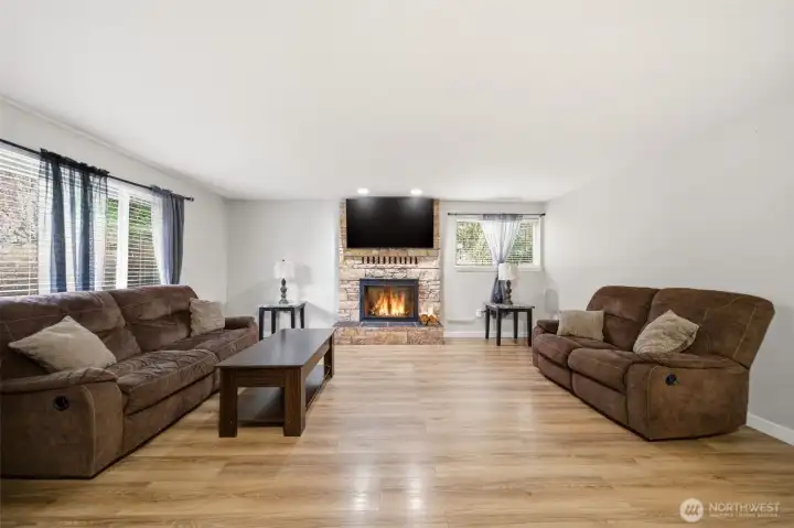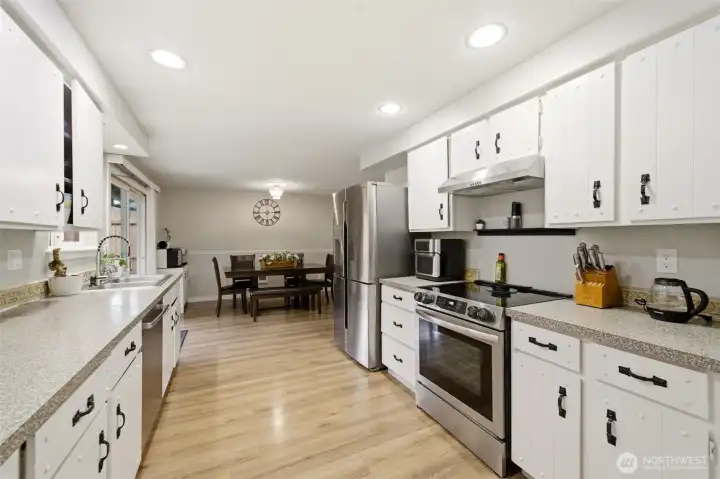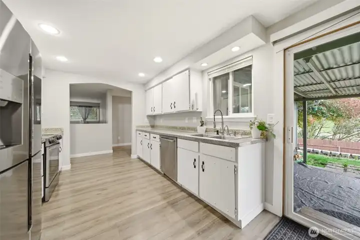 Welcome to this beautifully updated one-level detached home featuring 3 bedrooms and 2 bathrooms across 1,329 square feet. Step inside to a spacious living room with a cozy wood burning fireplace. The kitchen is equipped with stainless steel appliances and a double stainless steel sink. Enjoy meals in the dining area with an accented lighting feature, and a slider to the covered patio overlooking the tiered yard. Entertain or unwind in the fenced backyard complete with a large patio space. The primary bedroom offers the comfort of an ensuite bath for added convenience. Property is just steps away from Highland Park. Don’t miss your chance to make this well-appointed home yours—schedule a tour today!
