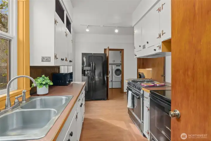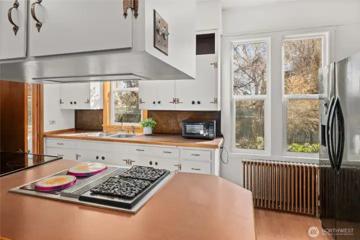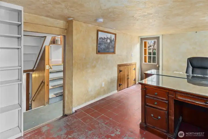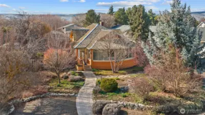 Historic charm and craftsmanship shine in this charming home located in the original Ellensburg Fruitlands District, built by the Farrell Brothers and rich with character. Distinctive rusticated concrete block—believed to have been created using a Sears Triumph Wizard block machine—adds architectural intrigue, while the unique curved enclosed front porch creates a welcoming first impression. Inside, original woodwork and hardwood floors span the main level, showcasing timeless quality. The home features 3 bedrooms and 2 full baths, plus two additional finished rooms in the basement—ideal for guests, hobbies, or flexible living space. Major updates include newer windows, fully updated electrical, and replaced plumbing waste lines. Situated on an extra-large lot with mature landscaping, the outdoor space is truly special. Enjoy established fruit trees, a graceful corkscrew willow, colorful perennials, a private patio for relaxing or entertaining, and even a bocce ball court. A large carport and additional off-street parking provide convenience and flexibility. Zoned Office Residential, the property also offers dedicated access to a back office space—perfect for working from home, a small business, or creative studio. Located just minutes from schools, parks, and downtown Ellensburg, this unique property blends historic charm, thoughtful updates, and versatile living.