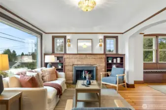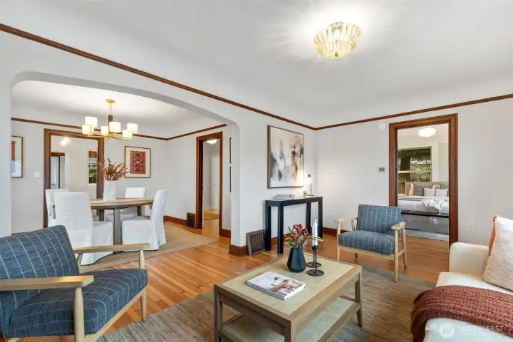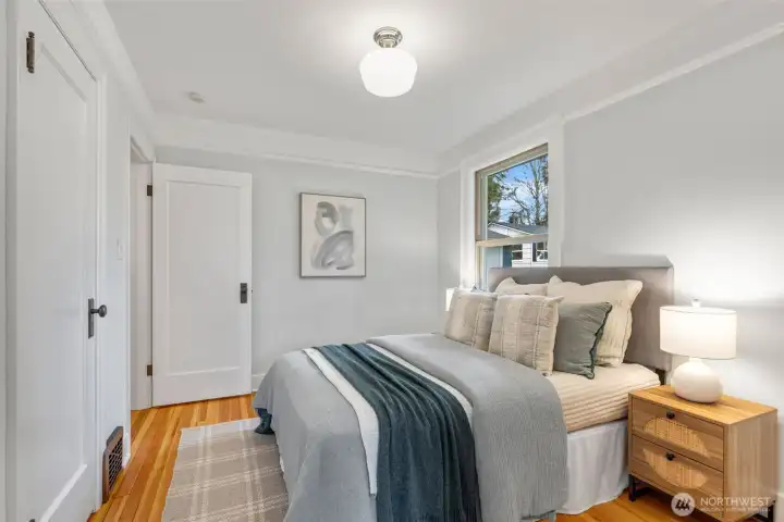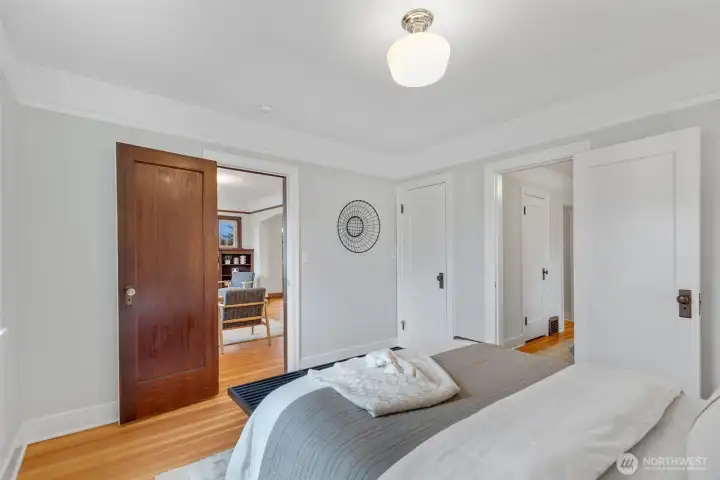 Two houses! A truly rare opportunity to own two impeccably restored homes on a magnificent parcel, perched high with views of the Cascades and glimpses of the Seattle and Bellevue skylines. The main home is an Art Deco treasure. History has been respected. The mahogany millwork and coved ceilings are pristine, a reminder of the careful craftsmanship of another era, while the comforts of modernity, like air-conditioning, are fully embraced. You don't have to compromise comfort to live in such rich, warm character. Every space is special, you will feel it the second you walk in the door. The living areas flow one to the other, inviting entertaining. The sunny living room, anchored by the Arts and Crafts fireplace, leads to the spacious dining room with an enchanting window seat. You will adore the new kitchen adjacent to the sunroom, with soft close cabinets, quartz, and new appliances. The restful side of the house has a tasteful, comfortable bathroom and three nice sized bedrooms, one with a wonderful built in desk and another large enough to accommodate a king bed. The second house is an absolutely darling cottage that lives large. From toe to crown, this charmer has been smartly updated from the new floors and trim to lighting and a recent roof. Every step through will be a delight. There's a large two car garage and the cottage has its own driveway and additional off-street parking. A thoughtful restoration of an extraordinary property. So lovely!