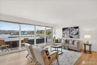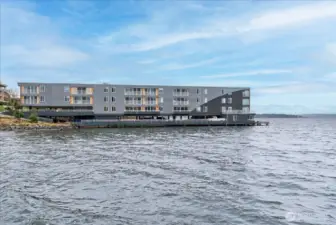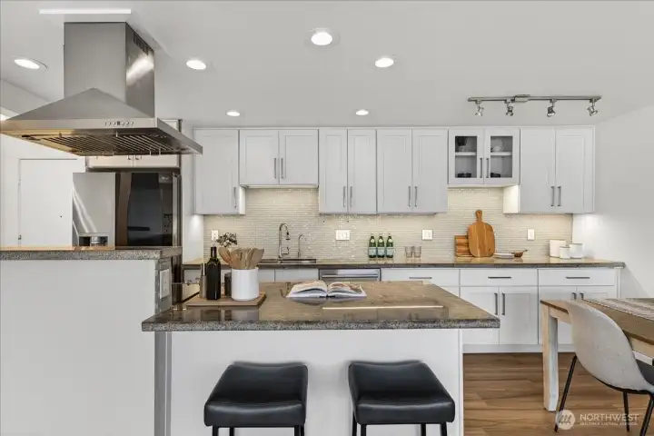 True waterfront living on Lake Washington in Kirkland's coveted Moss Bay neighborhood, just moments from Downtown Kirkland's celebrated dining, cafés, boutiques, and parks. Thoughtfully positioned in the building, this two-bedroom, 1.75-bath residence offers a surprisingly quiet retreat — open the sliding glass doors and what you hear is water. Expansive views stretch across Lake Washington toward the downtown shoreline from the living area, the private deck, and both bedrooms. At 1,102 square feet, the open-concept layout is beautifully updated and move-in ready — featuring a chef's kitchen with white shaker cabinetry, granite countertops, stainless appliances, and a statement range hood, flowing seamlessly into the dining and living areas and out to the private waterfront deck. Spacious dedicated laundry room in unit. Residents enjoy access to a private dock perfect for swimming, kayaking, or tying up a boat — plus direct proximity to David E. Brink Park and Kirkland's beloved waterfront path. Covered parking conveniently located near the main entrance completes this exceptional offering. Some things you simply have to experience in person — this is one of them. Seller Pre-Inspection completed.
