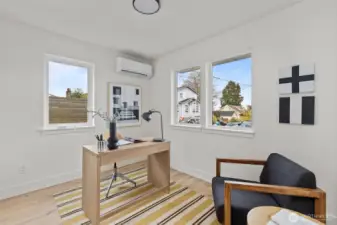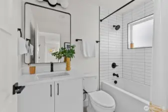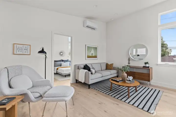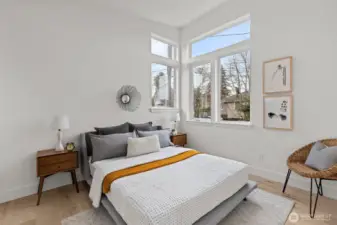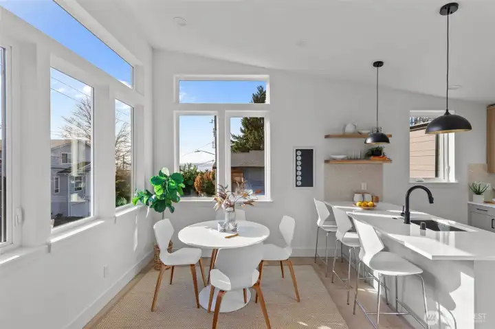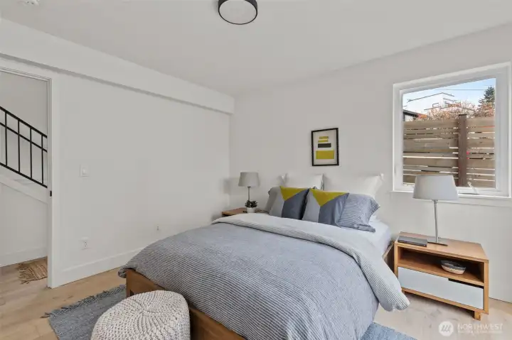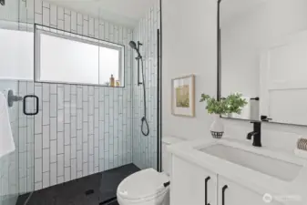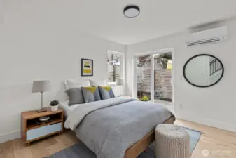 Contemporary design and quality craftsmanship define this stand-alone 3-bedroom DADU delivering light, volume, and privacy. Vaulted ceilings and real hardwoods set a warm tone for the open living and designer kitchen featuring Belmont cabinetry, quartz surfaces, induction range, and elegant fixtures. The primary suite boasts a walk-in closet and custom-tiled bath, complemented by two additional bedrooms and full guest bath below. High-efficiency HVAC and water systems ensure year-round comfort, with no-carpet interiors, a fully fenced private yard, and dedicated off-street parking. A rare fusion of independence, sustainability, and West Seattle charm just minutes from Lincoln Park, shops, and waterfront trails.