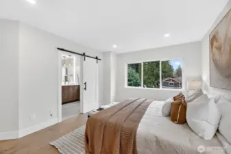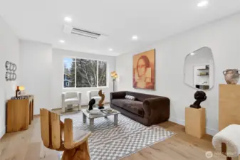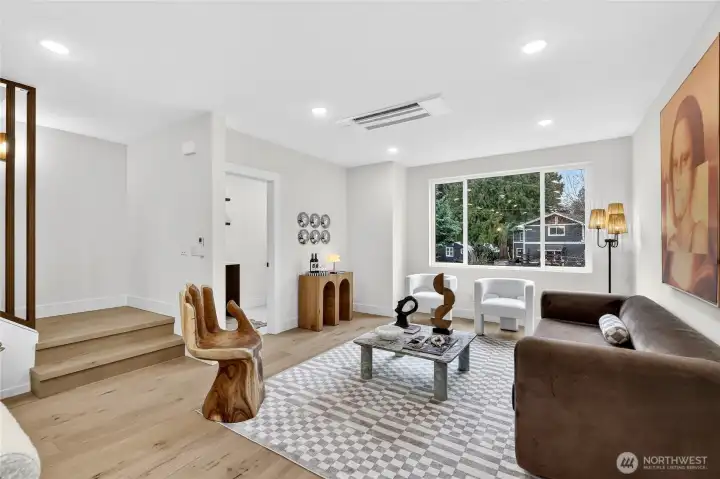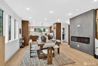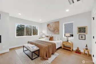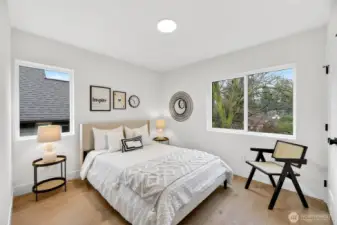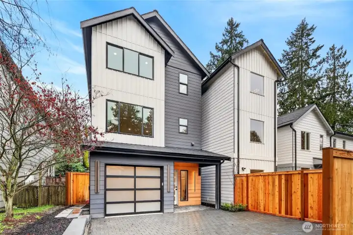 Welcome to this luxury modern 5B3.5BA home built by premier builder Seattle Modern Construction. High end design and finishes define this home throughout: Custom kitchen cabinetry w/ built-in pantry, soft close cabinets, high end Cafe appliances, engineered hardwood, Venetian plaster fireplace, and cassette style fireplace for heating/cooling. Light, bright open floor plan with desirable 3B2B on same level with a primary suite featuring heated floors, spa inspired rainfall shower with dual shower heads and built-in closets. Lower level features a media/flex room and another bedroom. One car garage with driveway parking available for 3 additional cars, and a 220V outlet for EV charging. Located in the heart of Victory Heights, easy commute to SLU/Bellevue, Greenlake, Ravenna and all that Seattle has to offer. Welcome Home!
