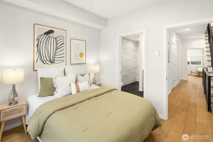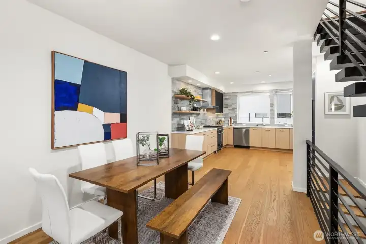 Better-than-new 4 bed, 2.5 bath townhome in the heart of Bothell! Ideally located just minutes from vibrant downtown Bothell, scenic trails, and beautiful parks. This modern, sleek home features a bright, open-concept main living area filled with natural light. The gourmet kitchen shines with stainless steel appliances, quartz countertops, and stylish finishes—perfect for entertaining. Upstairs, generously sized bedrooms offer excellent ceiling height and abundant light, while the spacious primary suite boasts a walk-in closet and a luxurious ensuite bath. Enjoy outdoor living on your private rooftop deck. Complete with a two-car garage, low HOA dues, and low-maintenance living. No rental restrictions make this an excellent opportunity for both homeowners and investors. Located in the highly sought-after Northshore School District with easy access to Hwy 522 and I-405 for a quick commute to Bellevue and Seattle. Close to shopping, dining, and more—this move-in ready home has it all!