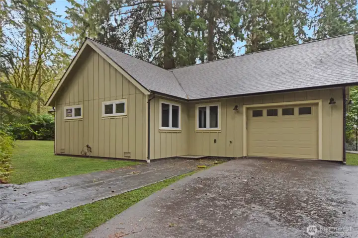Motivated Seller. For a limited time, the seller is offering a special rate-lock on a 30-year fixed-rate purchase loan—significantly below current market rates saving hundreds of dollars per month over 30 years. Alternatively, buyers over 62 may choose to purchase with a reverse mortgage, providing flexibility for a variety of financial situations. Completely re-built from the foundation up in 2021, this artfully crafted 2-bedroom + den home showcases a custom design with cathedral ceilings and a spacious, light-filled living and dining area that highlights quality materials throughout. Septic approved for 3 bedrooms. Enjoy modern comforts and thoughtful details in every room. The open layout is perfect for relaxing or entertaining guests. Short drive from the Bainbridge ferry dock, this home offers easy access for commuters and day-trippers alike. Just ten minutes from Poulsbo, you’ll have quick access to medical services, shopping, and a vibrant waterfront entertainment scene, adding to the home’s appeal. Designed all on one level, the residence is ideal for both first-time buyers and anyone seeking comfort and convenience in a serene setting. Enjoy safe, walkable interior roads. Poulsbo is best known for its unique blend of Scandinavian heritage and stunning Pacific Northwest scenery, small-town atmosphere, walkable historic downtown, high-quality schools, and immediate access to water recreation on Liberty Bay. HOA with common waterfront, trails and recreation.