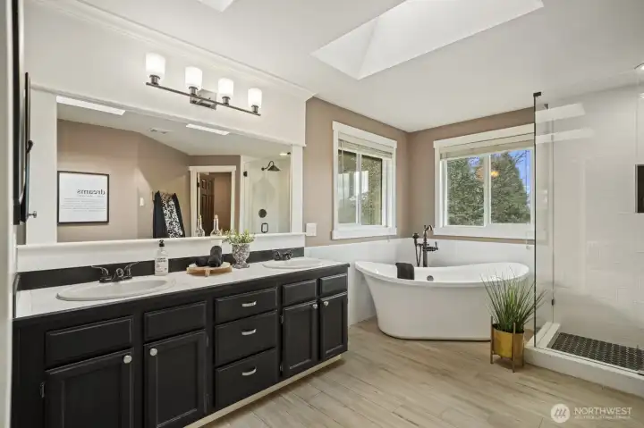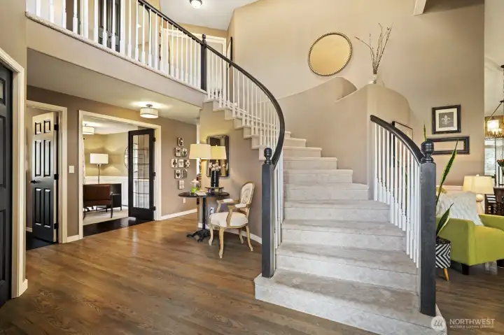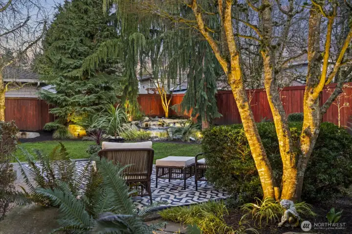 Impeccable & tastefully updated Apple Tree home w/ideal floorplan, beautiful landscape & tranquil backyard retreat. A grand entry w/curved staircase complemented by extensive hardwoods & luxurious carpet. Designer touches & Parisian charm shine throughout. Convenient main-level bedroom/den with beveled glass French doors, +¾ bath w/new shower. Beautiful living & dining rooms with dramatic cathedral ceiling. Sun-filled kitchen features gas range, white quartz, island seating, garden window & generous walk-in pantry w/glass door. The eating nook overlooks the serene waterfall. An extended family room w/gas fireplace accommodates large gatherings. Double doors lead to spacious primary suite w/soothing waterfall sounds. The spa-like bath includes freestanding tub, new shower, dual vanity & private toilet. Upstairs offers 2 additional bedrooms, full bath & a spacious bonus room—perfect for lounging or game nights. Skylights add year-round natural light. The backyard showcases charming gardens, mature landscaping, waterfall, arbor, patio, flagstone & fenced, flat yard—all beautifully lit at night. Additional features include gated paved area for a boat or trailer, oversized 3-car garage w/workbench and storage, a newer 50-year roof, new 50-gallon water heater & new garage doors. Pre-inspected and move-in ready with a one-year home warranty for peace of mind. Close to parks and trails, and just five minutes to Willis Tucker Park with seasonal activities and a farmers market.