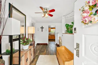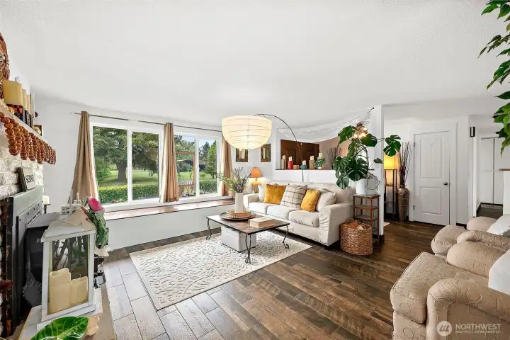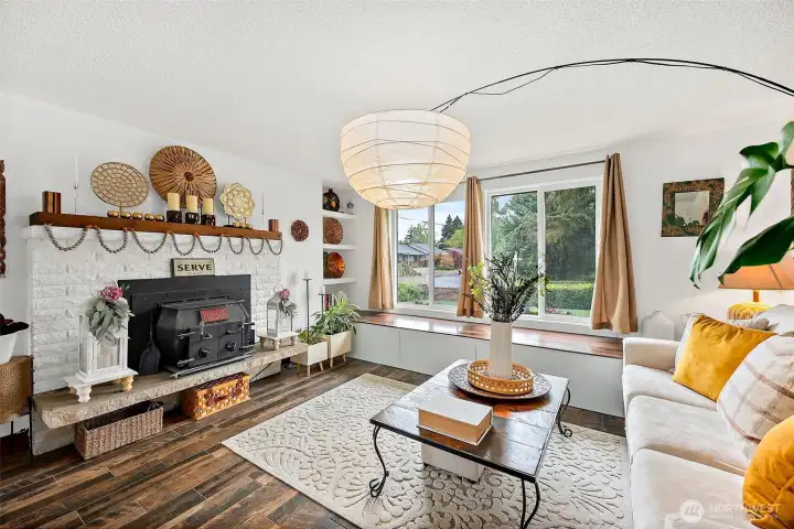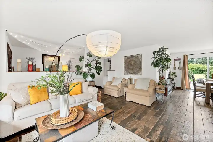 On this LARGE lot sits this comfortable one-level home offering plenty of space with 3 bdrms plus a bonus room that could easily be a 4th bdrm, office or playroom. You will find both a living room and family room. One with a fireplace the other with cozy woodstove. Great for creating separate hangout or relaxing areas. This home features a new roof and upraded porcelain tile flooring, has the warm look of wood but durable and easy to maintain. Large custom shower off primary. Oversized 2 car garage with extra room for storage, projects or hobbies. Step out the sliding door onto a large patio and enjoy private yard with lots of space for outdoor living. Sepearate storage shed to keep tools and gear dry and secure.