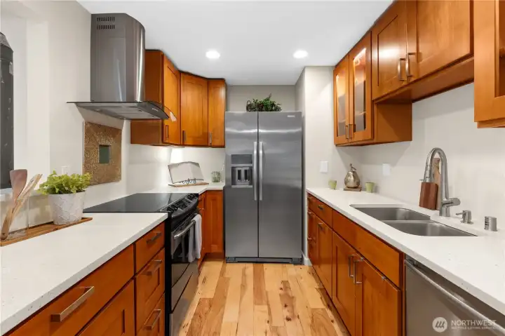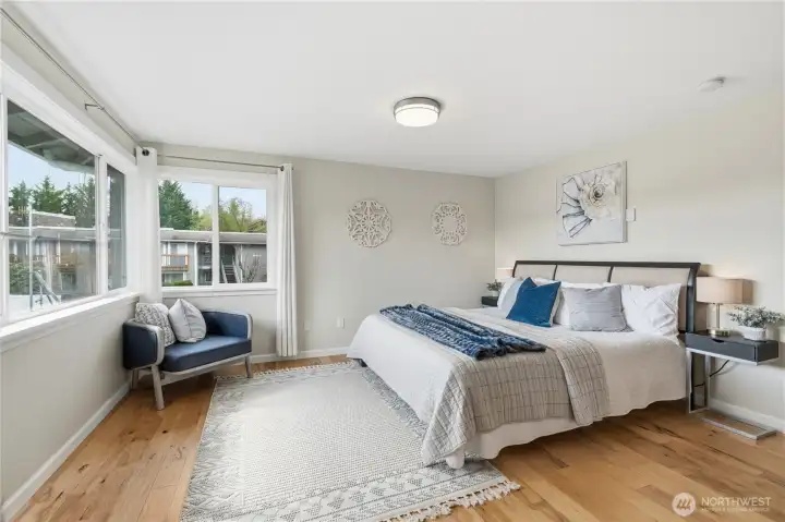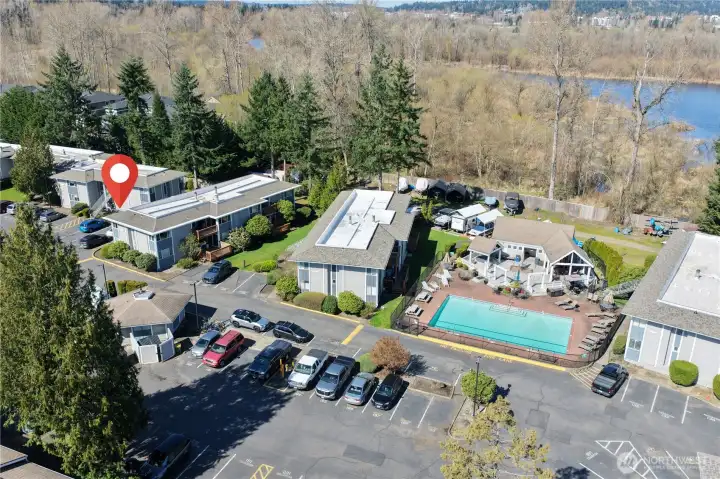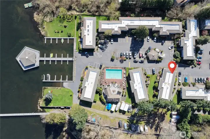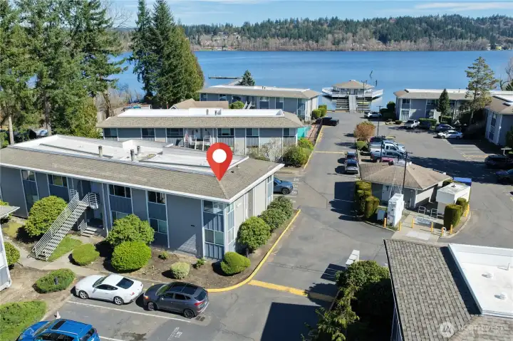 Welcome to this like-new top-floor condo featuring a full studs-out remodel completed in 2017. Enjoy direct private Lake Sammamish access with your own boat, kayak, or paddleboard - private boat launch, dock, & boat/RV storage on-site! Thoughtfully redesigned with an open-concept layout, nearly every element was updated—flooring, insulation, water heater, kitchen, baths - too much to list. New windows flood the home with natural light & offer serene lake views from the primary suite. The kitchen showcases quartz countertops, glass-front cabinets with lighting, & generous prep space, flowing seamlessly into the dining & expansive living area—ideal for entertaining. Two large sliders connect the dining & third bedroom to a private deck, perfect for relaxing & enjoying fresh air. The spacious living area offers flexibility & warmth with a cozy wood-burning stove. The primary suite features multiple windows, lake views, a large walk-in closet, & convenient in-unit washer & dryer. The en-suite bath includes an oversized, fully tiled shower rarely found in condo living. Community amenities include a heated pool, hot tub, & over-the-lake cabana. Conveniently located near Marymoor Park - 1.5 miles, Marymoor Village Garage - 2.5 miles, and Redmond Technology Station - 1.7 miles for easy Link Light Rail commute. Just minutes to Microsoft campus. Served by award-winning Lake Washington schools. HOA is well managed. No rental cap or special assessments on this unit and is pet friendly.