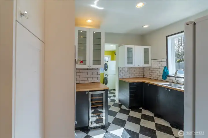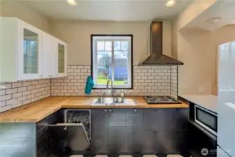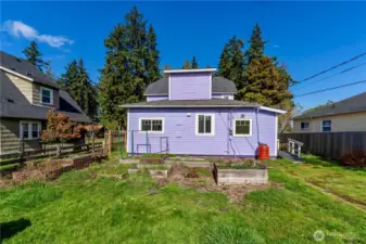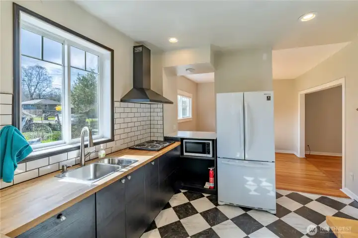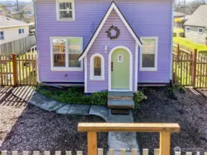 This storybook-inspired 1925 cottage blends vintage charm with thoughtful updates and is ready for its next chapter. The whimsical cat-slide roofline and cheerful curb appeal hint at the character waiting inside, where refinished fir floors, solid core wood doors, and 9-foot ceilings create a warm, welcoming feel. The stylish IKEA kitchen features maple countertops, tiled backsplash, newer appliances, and an under-counter beverage fridge. The main level includes a comfortable bedroom and beautifully updated bath, while upstairs offers two spacious bedrooms with large closets and a second updated full bathroom featuring an extra-deep soaking tub. Modern improvements include updated vinyl windows with custom top-down/bottom-up blinds, updated electrical, plumbing, interior/exterior paint, and more. Outside, the fully fenced south-facing backyard offers sunny planter boxes and space to relax or garden. Detached 1-car garage with additional shop space for hobbies or storage. Centrally located near recreation, shopping, coffee shops, and the YMCA.