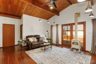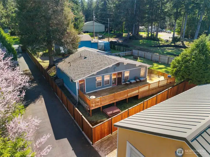 Beautiful 1 story home next to Mason Lake! This move-in ready, 3-bedroom home has everything you’ve been waiting for. Spacious living area with vaulted ceiling, free standing stove and French doors leading to the large back deck. Modern kitchen with Stainless Steel appliances and dining area. Primary bedroom with attached full bath and door leading to the back deck. Two additional bedrooms, 3/4 bathroom and utility room. Enjoy the large fully fenced backyard, attached 2 car garage, plus 1120 sqft detached garage, RV parking and a circular driveway. This home has it all!