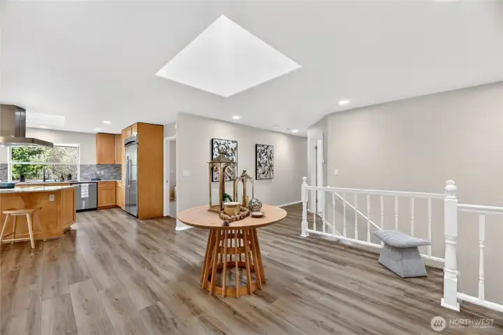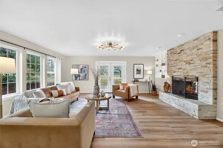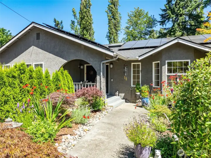 Tucked onto a sylvan acre in Kenmore, this handsome daylight rambler feels like the kind of place where life lives bigger-bigger gatherings, bigger dinners, bigger possibilities. Step through the front door & the skylit foyer immediately sets the tone—bright, welcoming, & hinting at the generous spaces ahead. The kitchen delivers the goods with induction cooking, stainless appliances, & an adjacent laundry-pantry "command center". The dining & living spaces gather around a classic 2 sided wood-burning fireplace, perfect for Northwest evenings that call for a little warmth & a glass of something good. 3 bedrooms—including a comfortable primary suite—line the main level. Downstairs, things open up in a big way: an expansive media room, guest powder room, 4th bedroom, office/gym, + ¾ bath. The former 2-car garage has been cleverly transformed into a mudroom & hobby hub with sink & ample gear storage. Then here’s the flex: A 719 sq ft furnished apartment—currently earning $2,300/month on Furnished Finder—offers income or guest quarters. Tax records recognize the property as a legal triplex, offering multiple ways to live & invest under one roof. Outside, summer becomes a lifestyle. A 1,300 sq ft deck, spacious driveway for 8+ cars, raised garden beds, & garden shed make entertaining—& gardening—feel inevitable. Solar panels quietly help offset utilities (yes, even air conditioning in summer). In short: space, income potential, and a leafy acre to call your own—Kenmore style.