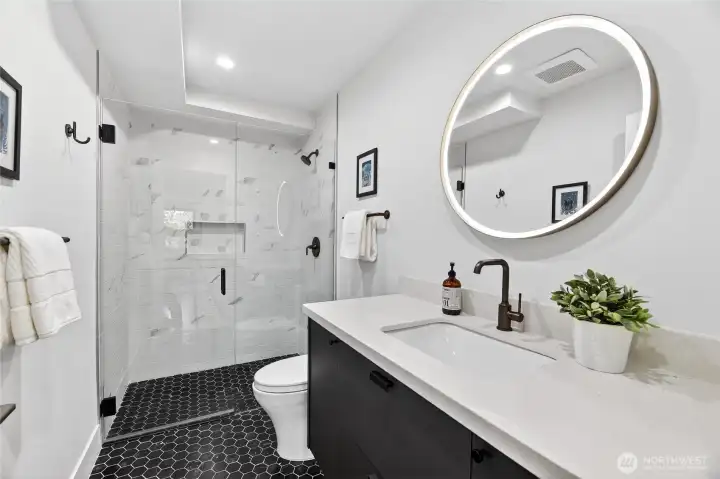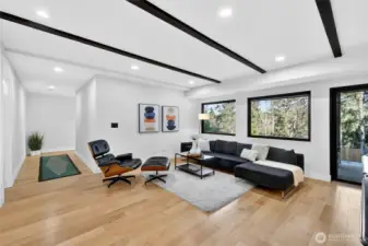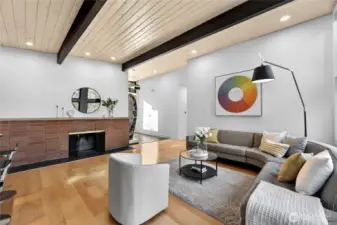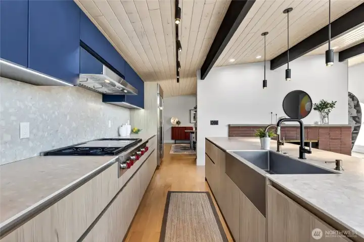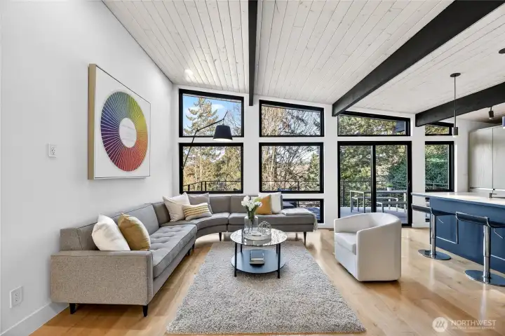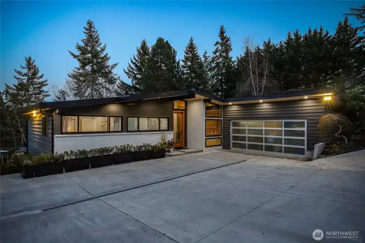 Mid-Century Modern reimagined! This Woodridge home was taken down to the studs in 2021 & rebuilt, preserving the original design while introducing modern, high-quality finishes. The open-concept main floor features a chef’s kitchen beautifully appointed with Leicht German cabinetry, Caesarstone counters, Sub-Zero fridge, Wolf range, Miele DW & Dacor double oven, plus an eat-in bar for casual dining. The upper deck extends the living space outdoors-perfect for dining & relaxing while taking in easterly territorial views. A separate, spacious dining area is flanked by an original braai (grill) & offers access to a side patio & insulated 2-car garage w/ EV-ready power. 5 beds & 4 baths across 3,020 SF offer exceptional flexibility, including 3 bedrooms on the main floor, & 2 ensuite bedrooms—ideal for guests or multi-gen living. The spacious primary suite includes a walk-in closet & a spa-like 5-piece bath featuring an incredible soaking tub. The lower level is designed for both relaxing & entertaining, featuring a built-in wet bar, 2nd wood-burning fireplace & a 3-person infrared sauna. Step outside to a private backyard oasis with a 16' Modpool & spa w/ a motorized cover, swim deck, professional landscaping, covered patio & JBL sound-perfect for everyday living & memorable gatherings. This home is located just moments from Factoria, DT Bellevue, parks, trails, dining, 2 neighborhood swim clubs, & award-winning Bellevue schools including Woodridge ES, Chinook MS & Bellevue HS.