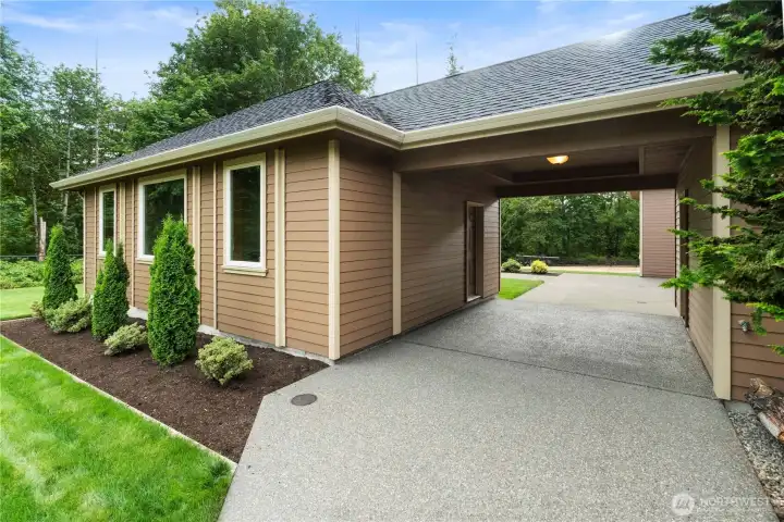 Experience refined living in this gated 4,000+ sq ft estate on over 2 private acres. Soaring vaulted ceilings, rich wood doors and trim, and walls of windows create a warm yet airy ambiance. The chef’s kitchen boasts a massive island and premium finishes, while the spacious laundry room offers abundant cabinets and counter space. Luxurious primary suite features a 5-piece bath with jetted tub, private balcony, and walk-in closet. Breezeway leads to a versatile space—perfect for a home office, guest suite, billiards room, or studio. Enjoy a 3-car attached garage plus a 4-car detached shop—elegance meets function.