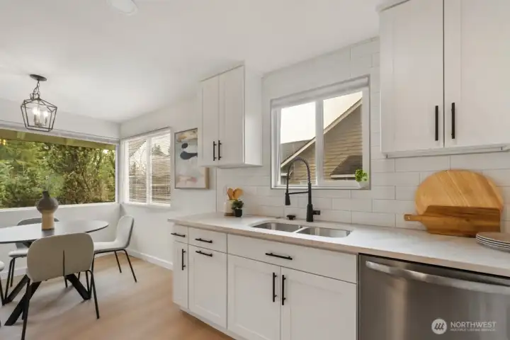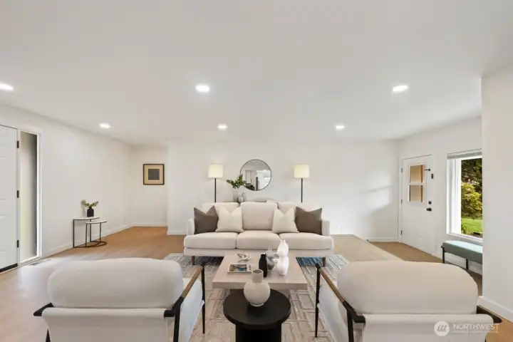 This beautiful sprawling rambler boasts a light and bright open great room concept and has been remodeled throughout. Generous living and dining spaces with new luxury vinyl plank flooring and fresh paint. Updated Chef’s kitchen with stainless appliances, quartz counters, quality cabinets and huge walk in pantry. Plenty of prep space and informal as well as formal eating spaces. This home is very liveable with spacious bedrooms, well appointed bathrooms and laundry on the main level - plus there is a flexible bonus space or 5th bedroom above the large 2-car garage. This gorgeous home features a cozy fireplace, fresh updates, tons of storage and plenty of parking. Magnificent fenced yard perfect for entertaining, BBQing, pets and playtime. Super well located close to delicious restaurants, groceries, great shops, services and transportation options. This one is a winner! Love where you live!