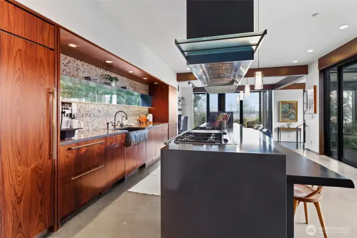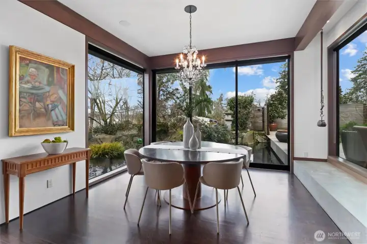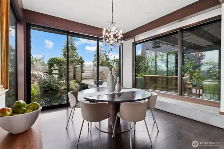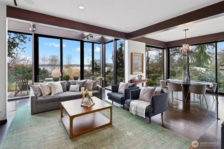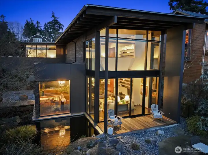 Exquisite, elegantly crafted custom-designed 2,960 SF residence offers 3BRs & 2BAs on a beautifully curated 7,805 SF lot. Artistic masterpiece designed by acclaimed architect George Suyama, it seamlessly blends structure with nature. A stunning koi pond wraps around much of the main living space & both deck & patio areas, creating a tranquil, immersive environment, while soaring ceilings & dramatic floor-to-ceiling windows flood the home with natural light to bring the outdoor sanctuary indoors. At the heart of the home is a true epicurean kitchen featuring a Lacanche Sully 1800 range, alongside a Tulikivi Finnish soapstone fireplace, raised kitchen garden & greenhouse—all thoughtfully designed with exceptional materials & craftsmanship, exemplifying NW Modern architecture at its finest. The serene, fully fenced grounds offer privacy & beauty w/sculptural landscape boulders, a bridged entry, specimen plantings, rock gardens & the extensive koi pond complete with fountains & a waterfall. Modern comfort meets timeless design with in-floor radiant heating, high-end sound system, custom metal fencing, glass-roofed patio, & a gas firepit, perfect for year-round enjoyment. Across from Waverly Park, with sweeping westerly views of Lake Washington, the Seattle skyline, & breathtaking sunsets, all within the coveted West of Market neighborhood, one of the Eastside’s most walkable & desirable communities - a once-in-a-lifetime opportunity to own a home that truly defines luxury living.