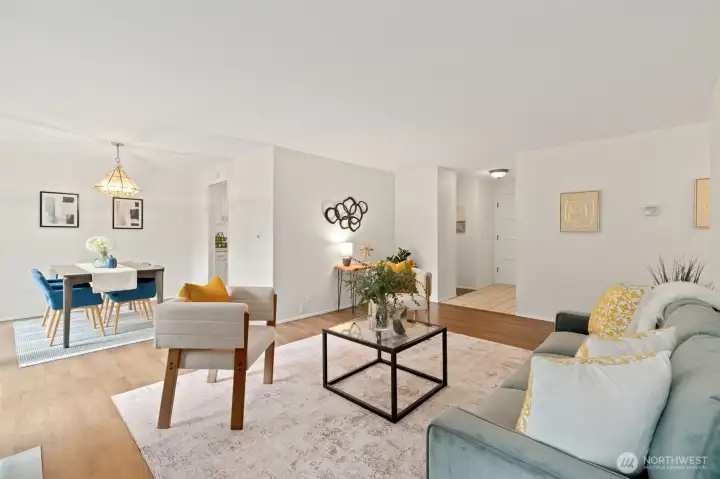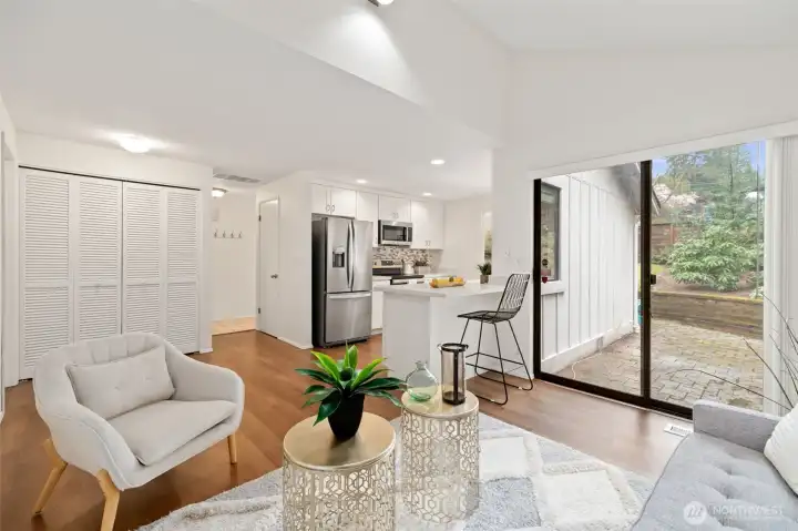 Privacy abounds on a quiet, dead end street, this one level home has it all! Beautiful curb appeal, easy parking w/ an attached 2 car garage at the font of the house + driveway. This one-story home boasts plenty of natural light, circular floorplan, oversized windows & multiple slider doors to an oasis of a back yard. Feels rural right in the city close to transit and shopping and a commuters dream. Spacious living room w/ wood burning fireplace & formal dining room. Newer kitchen w/ white cabinets, quartz countertops, undermount sink, full height glass tile backsplash & stainless steel appliances with smooth top range. Adjoining family room w/another slider to the backyard + convenient laundry. Primary bedroom features a 3rd sliding door to the expansive back patio w/ hot tub hookups, perfect for enjoying your morning coffee. Attached updated full primary bathroom with tub/shower. Two additional bedrooms and updated hallway full bathroom. Fenced backyard w/ beautiful custom patio pavers and thoughtfully designed retaining wall provides plenty of outdoor living and garden space. Mature landscaping to enjoy year round. Newer forced air furnace & hot water tank, flooring, interior paint & more! No HOA! Pre-inspected. Don't miss this Matthew's Beach home.