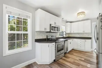 Charming bungalow on an oversized lot with exciting subdividing potential! This light-filled home welcomes you with beautiful hardwood floors and an inviting living room anchored by a cozy fireplace. The updated kitchen features a convenient eat-in area, perfect for everyday dining, while the refreshed main bath adds a touch of modern comfort. Downstairs, a spacious rec room with a half bath offers flexible space for entertaining, hobbies, or a home office. The primary suite includes an attached bath and walk-in closet, ready for your personal finishing touches. Step outside to enjoy expansive gardens and a charming front deck, ideal for relaxing or hosting gatherings. The generous lot offers endless possibilities for outdoor living, gardening, or future investment. Conveniently located near shopping, dining, and major highways, and within the highly regarded Issaquah School District, this home combines comfort, opportunity, and accessibility.
