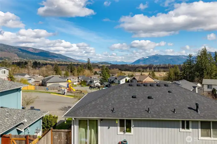 Welcome to this well maintained Sauk Mountain View Estates home! Step inside to vaulted ceilings & the front living room. Follow the home back to an additional living/family room, dining room & chef's kitchen featuring ample storage space in the custom maple cabinets & mobile kitchen island. The dining room is framed by large windows looking out to the deck & beautiful mountain views. Cozy up by the gas fireplace in the living room or step out onto the fully covered deck offering year round enjoyment regardless of the weather. The half bath on the main floor conveniently connects to the laundry/utility room. Upstairs you will find a generous primary suite complete with a private full bathroom. The two other bedrooms each have full mountain views. Whether you are relaxing inside or out on the deck or in the yard, you will not be disappointed w/the beautiful views & charming home.