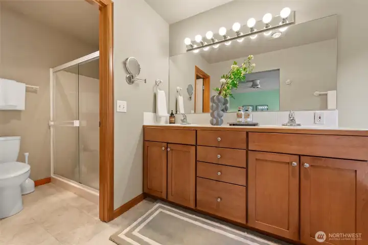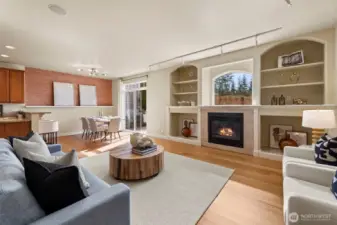 Well-maintained townhome-style condo offering 3 bedrooms and 2.5 baths in a convenient Shoreline location. This spacious home features a thoughtful layout with quality finishes and comfortable living spaces throughout.The main level showcases bamboo flooring, high ceilings, and a welcoming living area with a gas fireplace and custom built-in cabinetry. The kitchen is designed for both function and style, featuring granite countertops, a center island with bar seating, and a walk-in pantry.Just off the dining area, enjoy a sunny patio surrounded by mature landscaping—ideal for outdoor dining, relaxing, or entertaining.Upstairs, the generous primary suite includes a spacious bath with dual sinks, a jet tub, and a separate shower. Two additional bedrooms, a full bath, and a conveniently located washer and dryer complete the upper level.Additional features include an efficient hydronic heating system and an oversized two-car garage with abundant storage space. Located right next to the Ridgecrest Elementary School, near parks, trails, and everyday amenities.