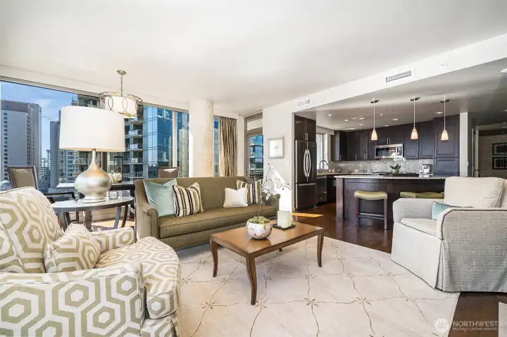 Experience elevated urban living in this 2-bedroom + den, 2-bathroom residence at Washington Square in the heart of Downtown Bellevue. This bright and spacious condo features an open-concept layout, expansive windows, and great views of the city skyline, filling the home with natural light. The thoughtfully designed floor plan offers a comfortable primary suite, a spacious second bedroom, and a versatile den ideal for a home office or additional flex space. The kitchen flows seamlessly into the dining and living areas, creating an inviting setting for both everyday living and entertaining. Residents enjoy premier building amenities including concierge service, fitness center, owners’ lounge, and secure parking, all within one of Bellevue’s most sought-after communities. Just steps from Bellevue Square, Lincoln Square, dining, shopping, parks, and major tech employers, this home offers the ultimate walkable downtown lifestyle.