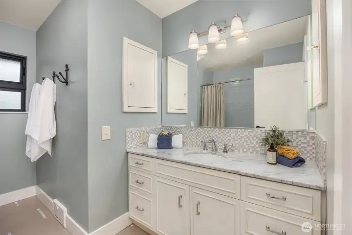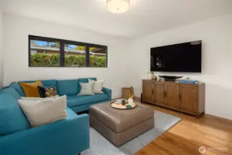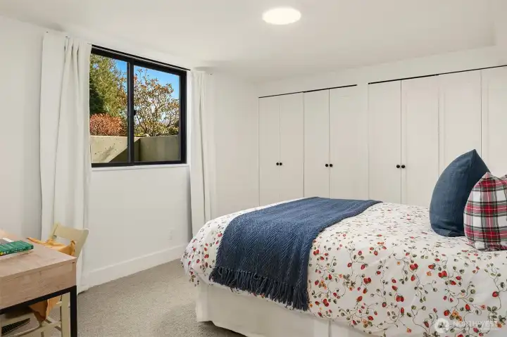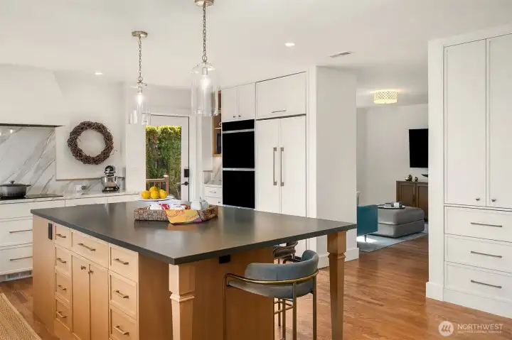Timeless Mid-Century modern home, on a coveted street, in the heart of View Ridge! Extensively renovated and carefully remodeled retaining the classic architectural elements with modern updates. The open-concept kitchen designed for everyday living and effortless entertaining. Custom cabinets, solid surface counters, an enviable “gather around” island with seating, along with generous storage, counter space and professional grade luxury appliances- SubZero, Wolf, Miele will elevate your kitchen experience. Warm rich hardwood flooring throughout seamlessly connects main floor living spaces. Original stone fireplace anchors the the living room seen from the kitchen and the dining area through an enfilade of rooms. Main floor primary ensuite and bedroom, feature french doors leading to a private outdoor space. Lower-level family room features warm wood paneled walls, brick surround fireplace, built-in storage. Ideal media room, play space or game day gathering. Two legal egress bedrooms, bathroom, exercise room, laundry and storage complete the lower level. Situated on a gorgeous lush double lot with year round blooms. Japanese inspired garden professionally designed and installed. Convenient alley access finds a 2-car garage, mailbox and garbage/recycling collection (out of sight.) Plenty of on street parking for guests. Near parks, dog park, SPCC, Children's, BGT,UW, and UVill.