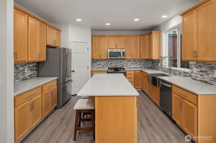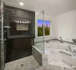 Modern take on the classic Craftsman, this Bothell home features expertly renovated kitchen + bathroom spaces. Quiet cul-de-sac setting + sublime outdoor area ensure serene living. Inside, there is an open-concept layout + exceptionally bright rooms. Main living level includes formal living/dining as well as great room highlighted by marble-surround fireplace. New stainless appliances, quartz counters + butler’s pantry enhance chef’s kitchen. Four bedrooms + bonus den on upper level. Primary bedroom includes vaulted ceiling + spa-like bath, with soaking tub + custom shower install. Enjoy mountain views from fenced backyard with covered patio. Attached garage, EV charger + close to freeways.