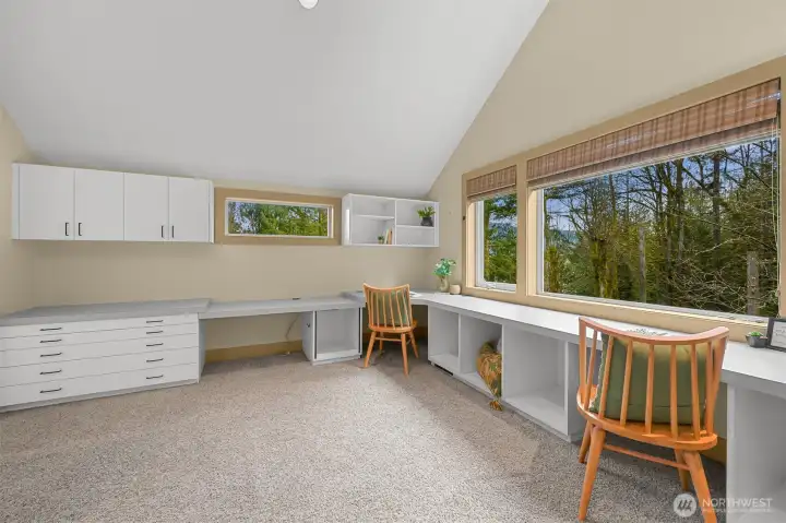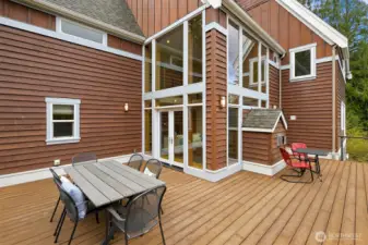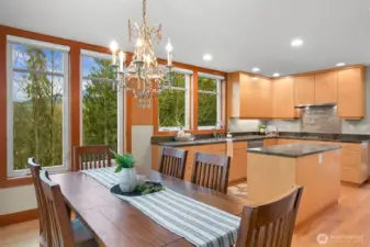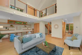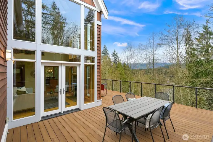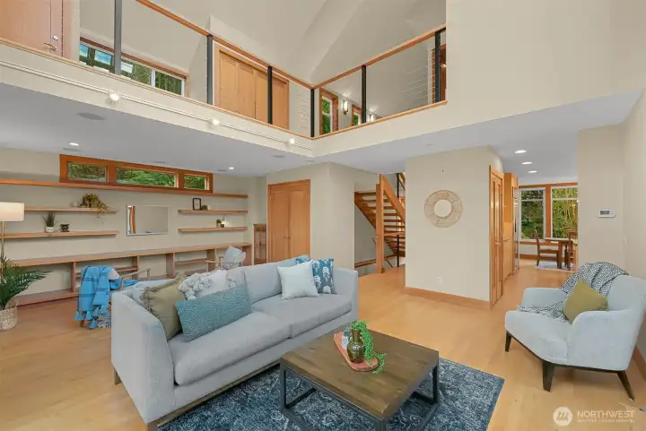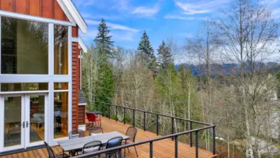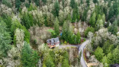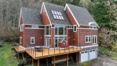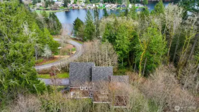 Custom PNW-style home showcasing exceptional craftsmanship and thoughtful architectural design. Privately perched on 3 lots, totaling over an acre, this stunning property offers peaceful surroundings and a true sense of retreat. The interior delights with warm maple floors, custom lighting, expansive windows, and abundant natural light that captures views of the lake and woods. The well-appointed kitchen features a spacious island, granite countertops, and custom maple cabinetry, perfect for everyday living and entertaining. Cathedral ceilings with skylights create an airy atmosphere, anchored by a striking ledgestone fireplace, integrated sound system, and a wraparound sunny private deck ideal for relaxing or gathering with friends. Upstairs, you'll find a versatile loft with flexible alcoves, an office/potential bedroom and a second primary suite, complete with a spa-inspired bath. The rear of the property borders a trail leading to Lookout Mountain, offering direct access to recreation. A truly special home that must be experienced in person to fully appreciate.