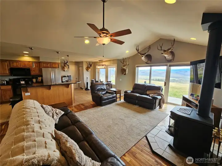 OUTSTANDING VIEWS! Enjoy open-concept living, updated features, and cozy warmth from the woodstove in this beautifully maintained 3-bed, 2-bath home. Inside, the floorplan features a bright great room with seamless flow between the living, dining, and kitchen areas—perfect for gatherings and everyday living. Vaulted ceilings, granite countertops and hardwood floors create an inviting atmosphere throughout the main living spaces, adding both style and durability. Retractable 20' sunsetter awning in place to help with energy efficiency and shade during warm summer evenings. Outside, enjoy grassy yards in both front and back with a new sprinkler system. Garden space, outdoor sheds, fenced dog run & space to expand. 50 AMP RV hookup for you or guests to enjoy. New exterior paint in 2024, too! Located just miles from Tonasket, Highland Sno Park & Sitmark Ski Hill, this home & property is the perfect location for those who want to be away, but not too far from local amenities & recreation. Brand new drilled well, dead end street and natural beauty everywhere you look. Don't miss this home & property.