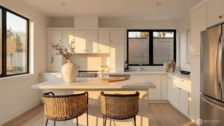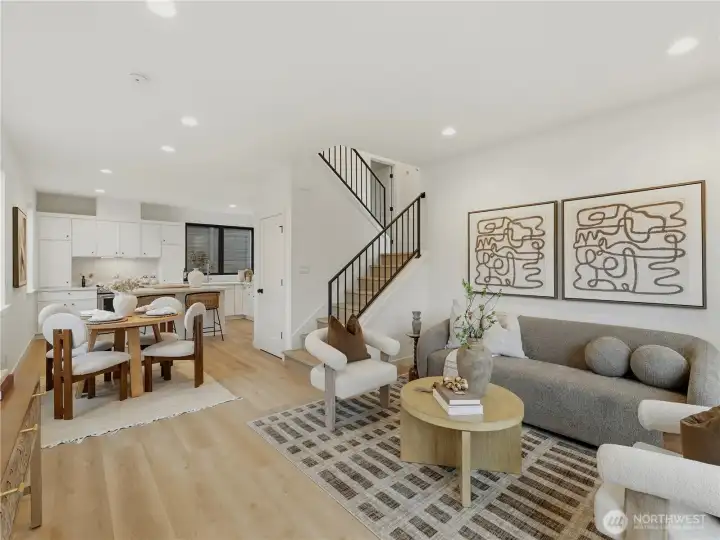 LAST HOME LEFT! The Hollis is part of the brand-new 28th & Dravus community, Cartwright Built’s latest offering of three thoughtfully designed residences in the heart of sought-after Magnolia. Targeting Certified Built Green 4-Star, this detached two-story cottage features a custom floor-plan with two bedrooms, each with ensuite baths, vaulted ceilings, dedicated EV-ready parking, and a fully fenced private patio. Elevated finishes throughout include thermally modified Radiata Pine siding, Level 5 drywall, a built-in kitchen island, in-ceiling ductless heating and cooling on the main floor, custom closet organizers, and an outdoor storage closet. The home is finished with a refined minimalist aesthetic, blending warm textures and clean lines to create a space that feels both modern and inviting. What makes this home so rare? This south facing DADU fronts directly on the street (free yourself from being tucked off an alley!) and lives like a true stand alone home. Convenient access to the Village and whisper quiet inside!