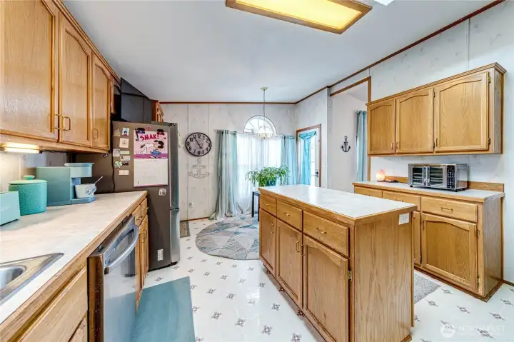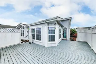 Welcome to this beautifully maintained 1993 double wide home offering 1,678 sq ft of comfortable living in a desirable 55+ community. This spacious 2 bed, 2 bath home features an attached 2 car garage and a wrap around deck with privacy fencing allows for great BBQ's, entertaining and perfect for enjoying peaceful mornings or relaxing evenings. Step inside and immediately appreciate the inviting flow of the home, enhanced by unique nooks that create a sense of warmth and added space. The abundant cupboard storage is a true standout, paired with an abundance of windows that flood the home with natural light throughout the day. The versatile den provides endless possibilities. The sunroom adds even more flexibility for hobby area or let your imagination ponder. The generously sized primary suite offers a relaxing escape, complete with easy access to a soaker tub and separate shower. The kitchen is extra large with more cabinets than you can imagine, a true cooks delight which includes a skylight for extra brightness. Heritage Park is close to all of the Sequim shopping, dining which makes living close to town a dream! Space rent is $685/mo includes water and sewer.