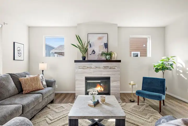 Welcome Home to this beautiful 3-bedroom + upstairs bonus space, 2.5 bath home located in the small Mountainside neighborhood. Seller is offering $3500 toward interest rate buy down! Instantly inviting with beautiful landscaping and a covered front porch for full curb appeal. Three car garage, large open kitchen and living space with walk in pantry plus loads of storage space will make you want to call it your own. Gorgeous wood mantel over fireplace makes this home warm and inviting. Enjoy the fully fenced backyard, perfect for entertaining or outdoor living. Unwind in your expansive primary bedroom, complete with an oversized walk-in closet & 5-piece en-suite bath. Upstairs laundry, two additional bedrooms and a generous loft provide flexibility for a home office or second living area. AC to keep you nice and cool on warmer days. Close to shopping, dining, parks, schools & JBLM. This home is 100% ready for you.