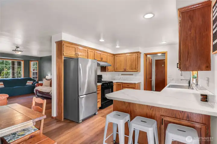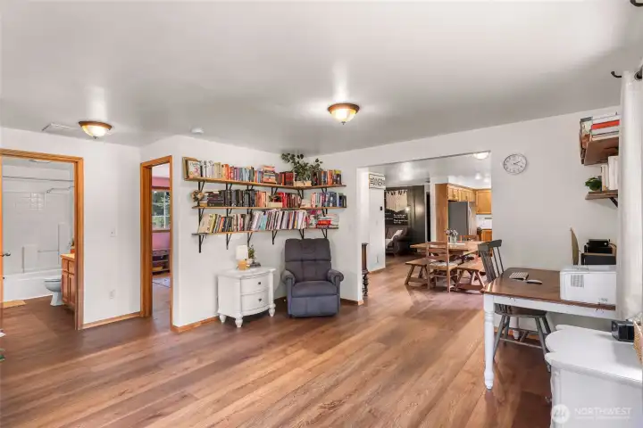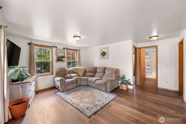 Nestled in the foothills among tall fir and cedar trees awaits this well-maintained single level home & 2,000 sf shop resting in a peaceful, park like rural setting on 3.49 acres. Plenty of room to entertain guests in the 2 living spaces kept cozy warm with the wood stove, or outside on the huge patio and backyard. Live the perfect holistic lifestyle complete with a chicken house, a BBQ/firewood outbuilding, fishpond, fruit tree orchard & dreamy green house with tons of room to park your toys and tinker in the expansive, multi-level shop. Enjoy the nearby amenities including hiking, biking, fishing, skiing, snowboarding, horseback riding, river rafting & Silver Lake Park. Shop has a bathroom, finished office area upstairs which has AC/heat, air compressor, and a 220v hookup. Home is also wired for a generator. Lots of water faucets to accommodate this large property. The pond even has a waterfall feature. Excellent opportunity for a home-based business and plenty of room for all your hobbies.