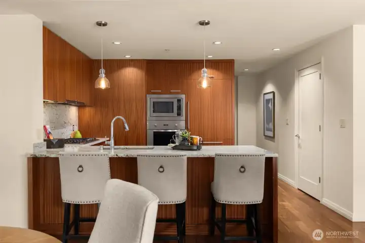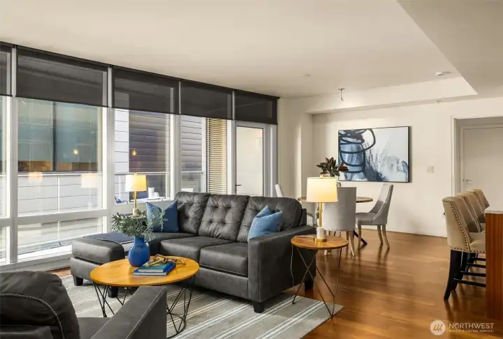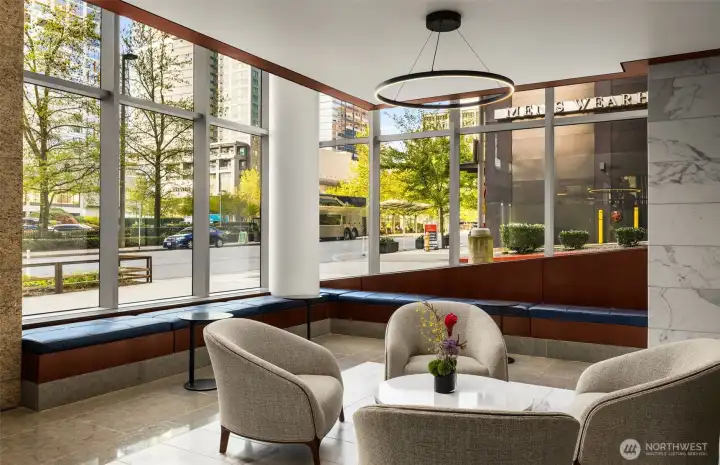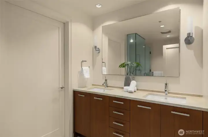 Experience refined city living in this 2-bedroom 1500+ sf residence at Bellevue Towers. Featuring double suites and a spacious great room with 9 foot floor to ceiling windows throughout. Hardwoods in the living area lead you to the king-sized primary bedroom with a double vanity, spacious shower and large walk-in closet plus 2nd closet. The open den offers flexible space for a home office or reading nook. The chef’s kitchen boasts Subzero and Viking appliances, quartz countertops, and seamless flow into the main living area flowing to private balcony complete with gas for grilling. Includes one parking space. Enjoy top-tier, newly upgraded amenities including a fitness center, spa with sauna and steam room, theater, dining room with kitchen for private parties, game lounge, and a half-acre urban garden with pet retreat—all in the heart of downtown Bellevue steps from world class dining, designer shopping and downtown park. Central heating/AC, secure package delivery, guest suites for out-of-town visitors, and 24-hour concierge complete the comfort.