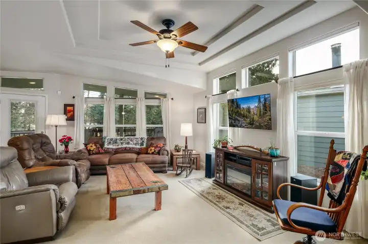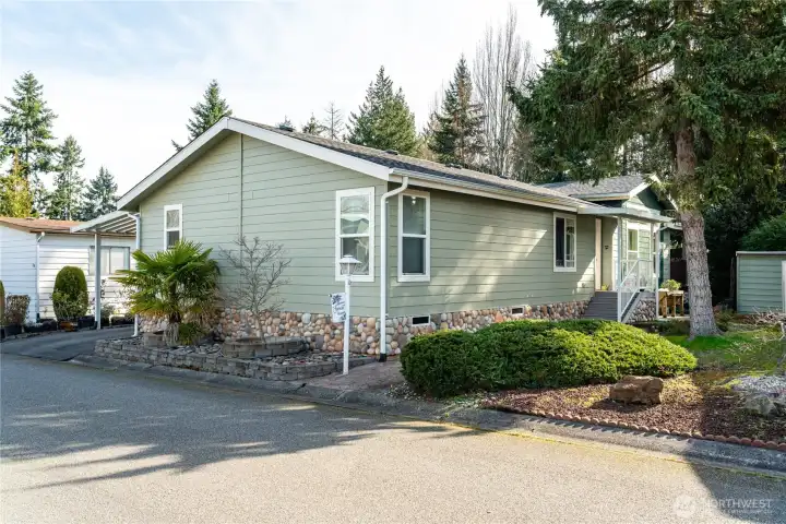 Welcome to Mariner Village - 55+ gated community with a Clubhouse, RV Parking, and many community activities/social clubs to enjoy. Fantastic 2014 Marlette in showcase condition with Natural Stone Skirting, an entertainment-sized Covered Deck on the community greenbelt and beautiful landscaping. Updates include New Roof, some New Siding, New Exterior Paint, all New Window Coverings including some with remote control shades! Enter the spacious interior with an open concept and vaulted ceiling, large windows, a lovely Den with built-in desk and cabinets and a large utility room with storage! Gourmet Kitchen with Stainless Steel Appliances, large, walk-in Pantry and beautiful cabinets. Both living and dining room feature a spacious layout perfect for everyday living & entertaining. Luxurious Primary Bedroom with large, Walk-in Closet and a Spa-like ensuite w/dual sinks & large shower. Additional features include: above Ground Planters, Large Carport and Storage Shed for outdoor use!