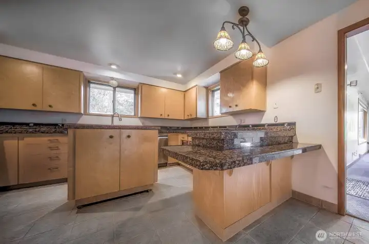1-acre fully fenced country home w/ gated entry. 3 BR, 3 BA, and 3096 SF. Long driveway leads to 2-car garage + well shed +adjacent covered parking that doubles as all-weather outdoor entertaining space. Property features expansive lawns creating multiple outdoor areas. There is a separate heritage mini orchard w/ mature pear, Rainier & pie cherry, vintage apple varieties, plums & grapevines. Also a separate large garden area ready to be cleared, also a large hand-built cedar & glass greenhouse. Exterior includes large deck off primary BR, mature landscaping, secondary entry to living room & laundry room; multiple customizable spaces. Interior: Large dining rm opens to wide staircase to carport & side patio. Granite kitchen w/ new appliances, granite counters, pull-out drawers on all lower cabinets & movable island. Spacious living rm w/ oversized view windows overlooking front yard. Wood-burning FP w/ stone surround. Down hall to Jack & Jill style bedrooms w/ connecting hall door. Laundry rm w/ W/D + full BA w/ tub & back deck access. Oversized primary suite w/ walk-in closet (glass French doors, convertible to office) & ensuite bath w/ shower. Lower level: Huge rec rm w/ wet bar & wood-burning stove, divided by open staircase for flexible layouts. Large bonus/hobby/stereo rm (that can be potential 4th BR) + full BA w/ shower & quartz vanity. This is a very special setting on a flat open lot with endless potential & a perfect blend of indoor comfort & outdoor living.