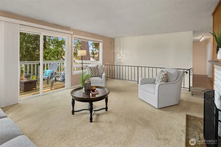 Very well-built mid-century home ready for your updates. Excellent opportunity to add a finished living space in the walk-out daylight lower level with high ceilings, a roughed-in 3rd bathroom, fireplace and a room that could be a 5th bedroom/home office/hobby space. Features a new roof in 2025, vinyl double-pane windows on the main level, hardwood floors, updated primary bathroom, copper plumbing, a 200-amp electrical service, and a large deck overlooking a level, fenced backyard. Ideal location near Shoreline Light Rail Station, shopping, Cromwell Park, Ronald Bog Park and Meridian Park.