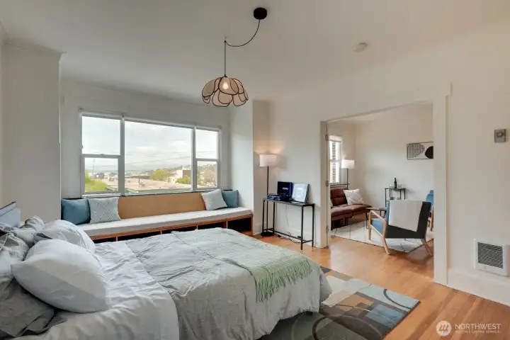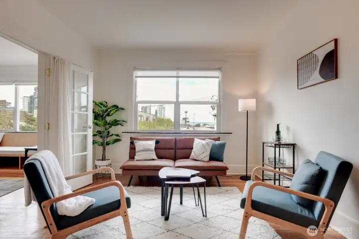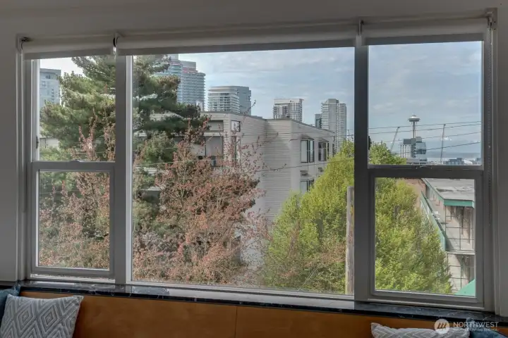 Wonderful opportunity to own a top-floor co-op in the heart of Capitol Hill, where classic charm and modern updates come together in one of the city’s most vibrant neighborhoods. This light-filled 2-bedroom home enjoys expansive views of the Sound, Downtown skyline, and the Space Needle, with windows that bring in natural light throughout the day.The spacious living area features hardwood floors and flows easily into the remodeled kitchen with butcher block countertops, newer appliances, and a layout that feels open yet comfortable. French doors connect the living room to the second bedroom, allowing the space to function as a den, office, or guest room depending on your needs.Thoughtful updates make everyday living easy, including in-unit washer and dryer, modern fixtures, and plenty of interior storage. Building amenities include bike storage, a community garden, high speed internet with Google fiber pet-friendly policies, and a well-run HOA, all in a solid, well-maintained building full of character. Enjoy the convenience of a central city location with light rail just blocks away, plus easy access to restaurants, bars (including neighborhood favorite The Doctor’s Office), groceries, Downtown, South Lake Union, and Pike Place Market. One of the best coffee shops in the city sits right across the street. City views, top-floor privacy, and unbeatable Capitol Hill walkability—this is city living at its best. Must see. HOA includes property taxes.