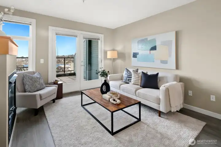 Enjoy convenient, comfortable Seattle living with sweeping views of Lake Union, Gas Works Park, the Cascades, Mountains and South Lake Union - plus front-row seats to 4th of July fireworks and the Holiday Ships. The expansive deck offers incredible space for entertaining, and relaxing. The kitchen features granite countertops, stainless steel appliances, and gleaming hardwood floors, all set against stunning natural scenery. Enjoy the electric fireplace’s instant ambiance. Includes two, side-by-side secure garage parking spaces with easy access, and an additional storage unit on the same floor as the unit. Ideally located near Fremont, SLU, downtown, and Queen Anne—near Amazon and Facebook, and minutes to great restaurants, transit, shopping, nightlife, bike paths and across the street from where to get one of the best sandwiches in town, Lyon's Grocery.
