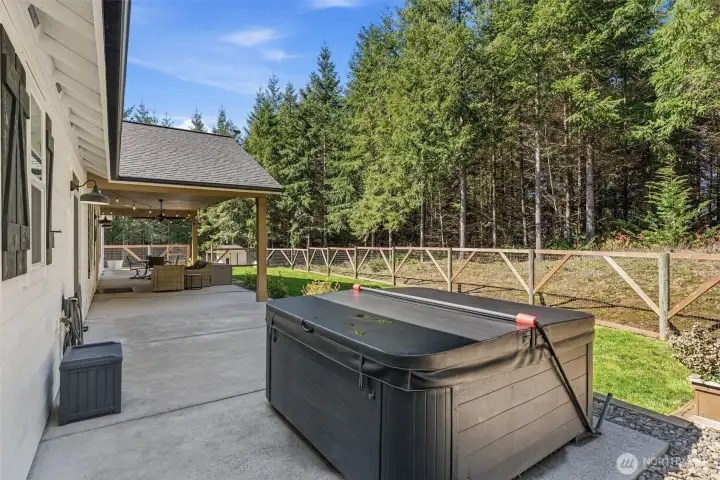 Welcome to this stunning 4-bedroom, 3.5-bathroom home in Castle Rock, WA, offering approximately 2,286 square feet of immaculate living space on 5 private acres. Built in 2019, this residence boasts beautiful open concept living space ideal for modern living, two primary bedrooms, split dual-vanity in the primary ensuite and enormous closet! Hardiplank siding, a composition roof, and luxurious LVP flooring throughout. Enjoy the gourmet kitchen with quartz counters, a farmhouse sink, and a propane cook stove, along with a formal dining area and an inviting breakfast nook. Relax on the expansive 14x30 covered cement patio, soak in the hot tub or cozy up around the firepit, this property is perfect for outdoor gatherings and quiet country living. The property is well-equipped for pets with three fenced yard sections and includes a chicken coop (chickens can stay). With walking and ATV trails on the property and community trails nearby, this home offers a lifestyle of convenience and natural beauty. Conveniently located within a gated community just a short drive from I-5, with low association dues covering neighborhood amenities and snow removal, this meticulously cared-for home is a rare find in Castle Rock, WA. Don’t miss the opportunity to make it yours!