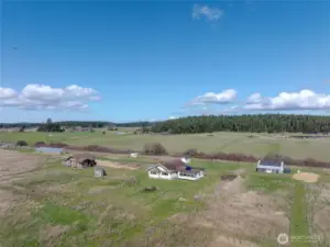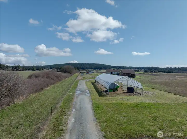 Rare 40-acre off grid parcel in the middle of Lopez Island, ready for your vision - homesteading, farming, gardening, or just enjoying one of the most peaceful areas on Lopez. Listed for $300k under assessed value. 6 bedroom septic installed, excellent well, elaborate professionally installed solar power including rooftop solar water heater. Fully fenced with 7' heavy duty deer fencing on the west and south sides, includes outbuildings and a 2500 s.f. high tunnel greenhouse, surrounded by territorial views in every direction with the Olympics to the south. The parcel is flat and cleared, which means lots of sunshine for growing things, beautiful sunrises and sunsets with some conifers recently planted in areas. Two classic farmhouses have been moved to the lot which require remodeling and an occupancy permit to move into. Central location allows quick access to the school, the village, the ferry, and a 10 minute drive to some of the best publicly accessible waterfront in the San Juans - Watmough Bay, Iceberg Point, and Point Colville.