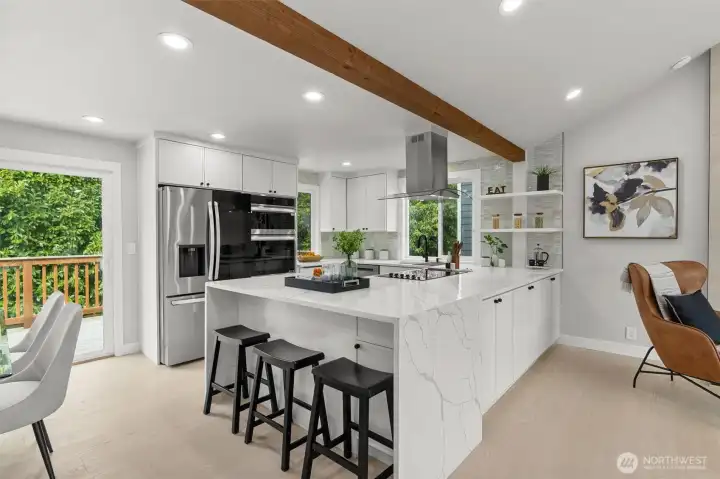 Perfectly situated in the vibrant Ravenna community, this home has been beautifully modernized for 2026. From the light-filled vaulted ceilings to the rich hardwood floors, every detail radiates quality. The heart of the home is the sleek modern kitchen, where a generous waterfall island/peninsula creates a natural gathering spot. The primary bedroom offers a quiet escape with its own en-suite bath and walk-in closet. This home is as functional as it is beautiful, featuring a brand-new furnace and central A/C system for total seasonal comfort. Discover a vast lower-level suite—the perfect canvas for a sprawling lounge area, a cozy movie theater, or an airy home gym. Both the front and back yards are fully fenced, offering a private, secure space for play or gardening, anchored by a brand-new entertaining deck. Located blocks from top-rated schools, Dahl Playfield, and University Village, this turnkey home offers a premium lifestyle in a walker’s paradise.