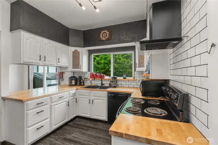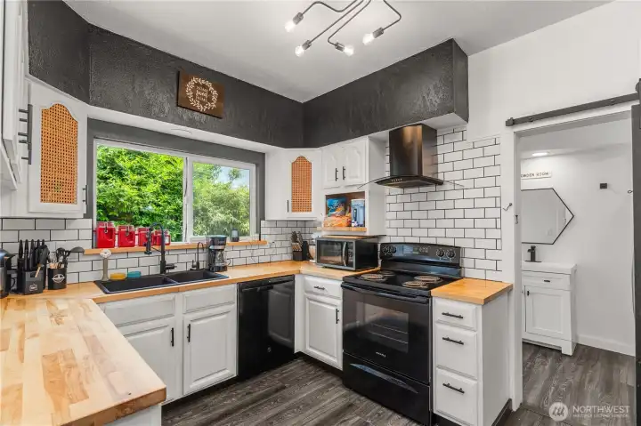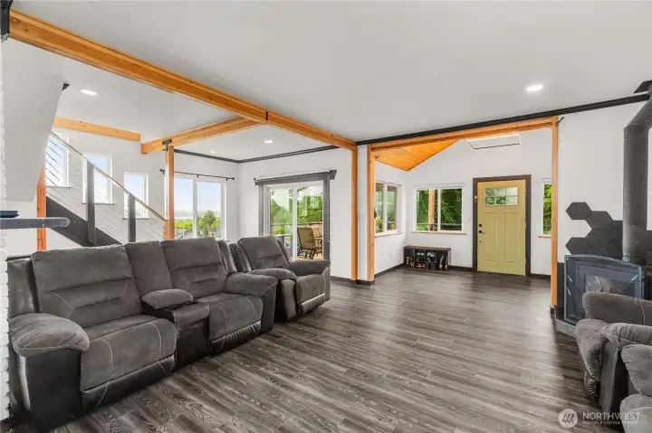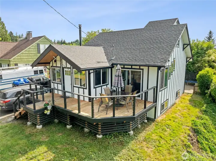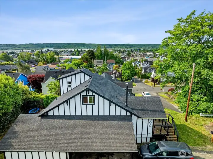 This recently remodeled 1911 home in Aberdeen is perched on a dead end road w/ peekaboo bay/river views and includes 2010 sq. ft. of living space. The home features a 3 bed, 2 full bath layout with laminate flooring, wood accent trim, and modern upgrades throughout. The main floor features a spacious living room w/ wood burning fireplace, dining room, main bathroom w/ walk-in tiled shower and bath tub, and kitchen w/ modern countertops, cabinets and appliances. The upper floor serves as a private en-suite retreat, featuring the main bedroom w/ full bathroom while the bottom floor is a fully finished basement w/ 2 full bedrooms, versatile lounge, and utility area w/ laundry hookups. Additional features include a one-car garage, carport, front/back deck, concrete patio and fenced back yard.